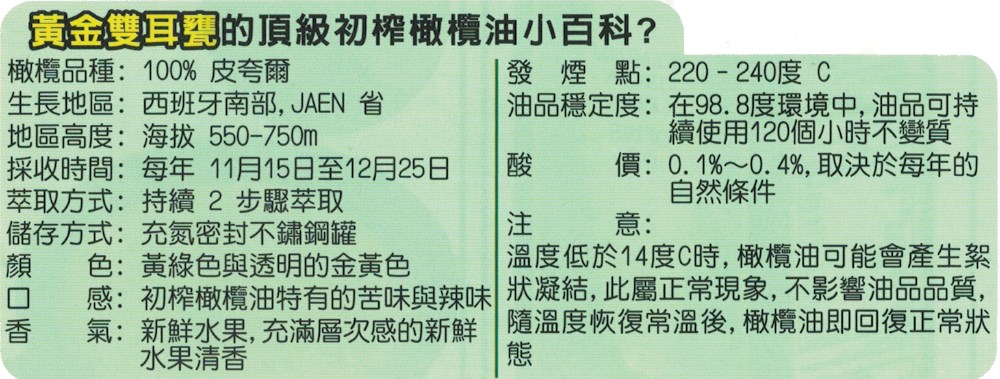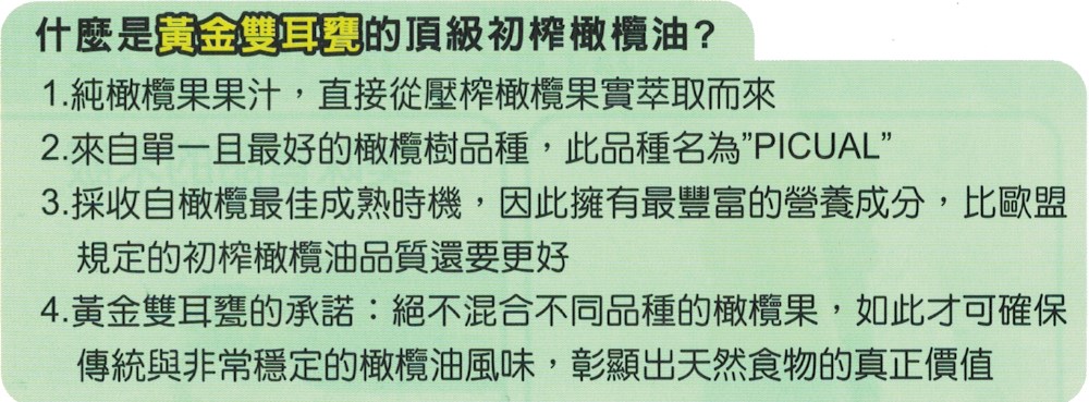 黃金雙耳甕橄欖油是使用單一且最佳品質的橄欖果製成,
